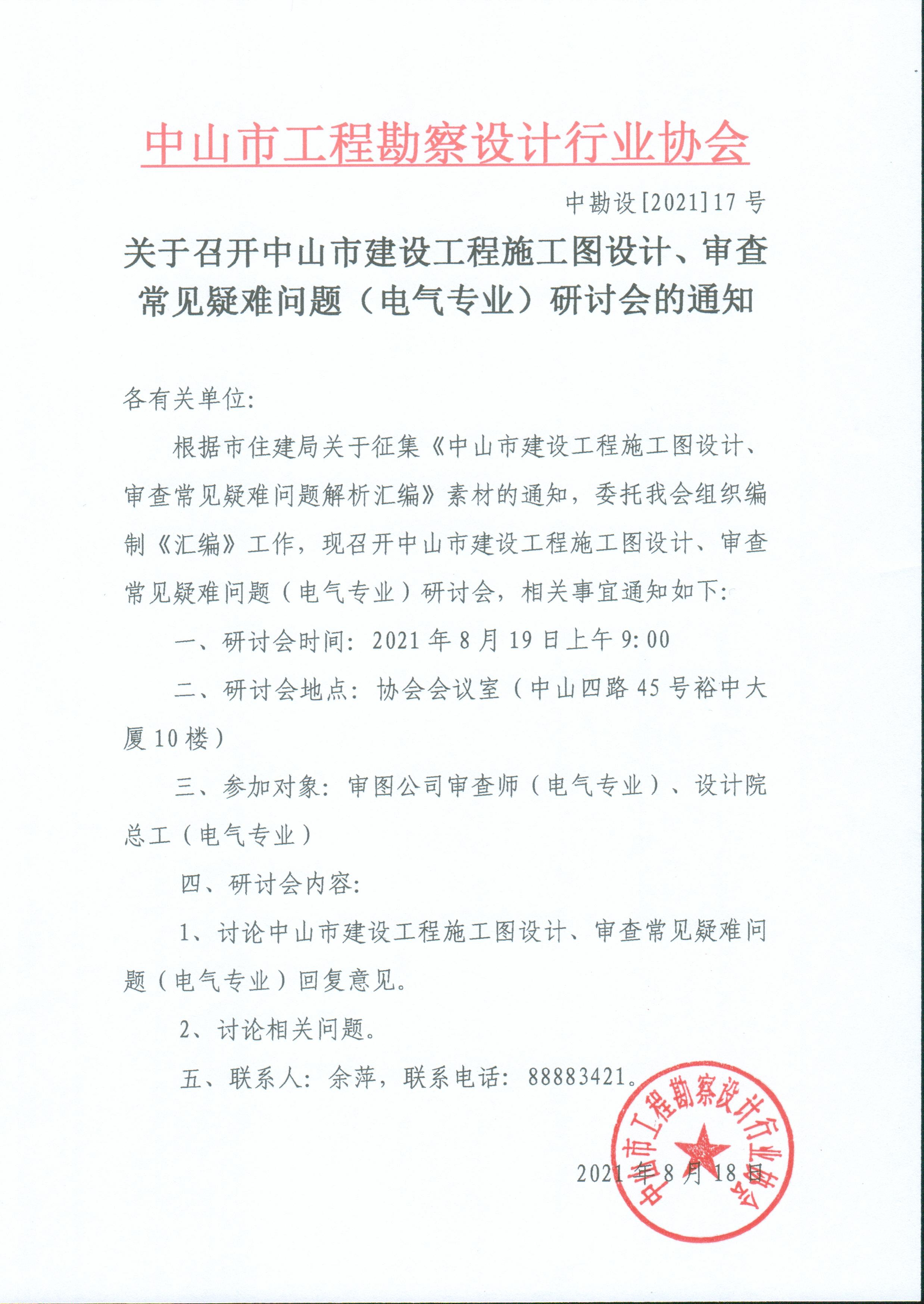 關于召開中山市建設工程施工圖設計、審查常見疑難問題(電氣專業(yè))研討會的通知
