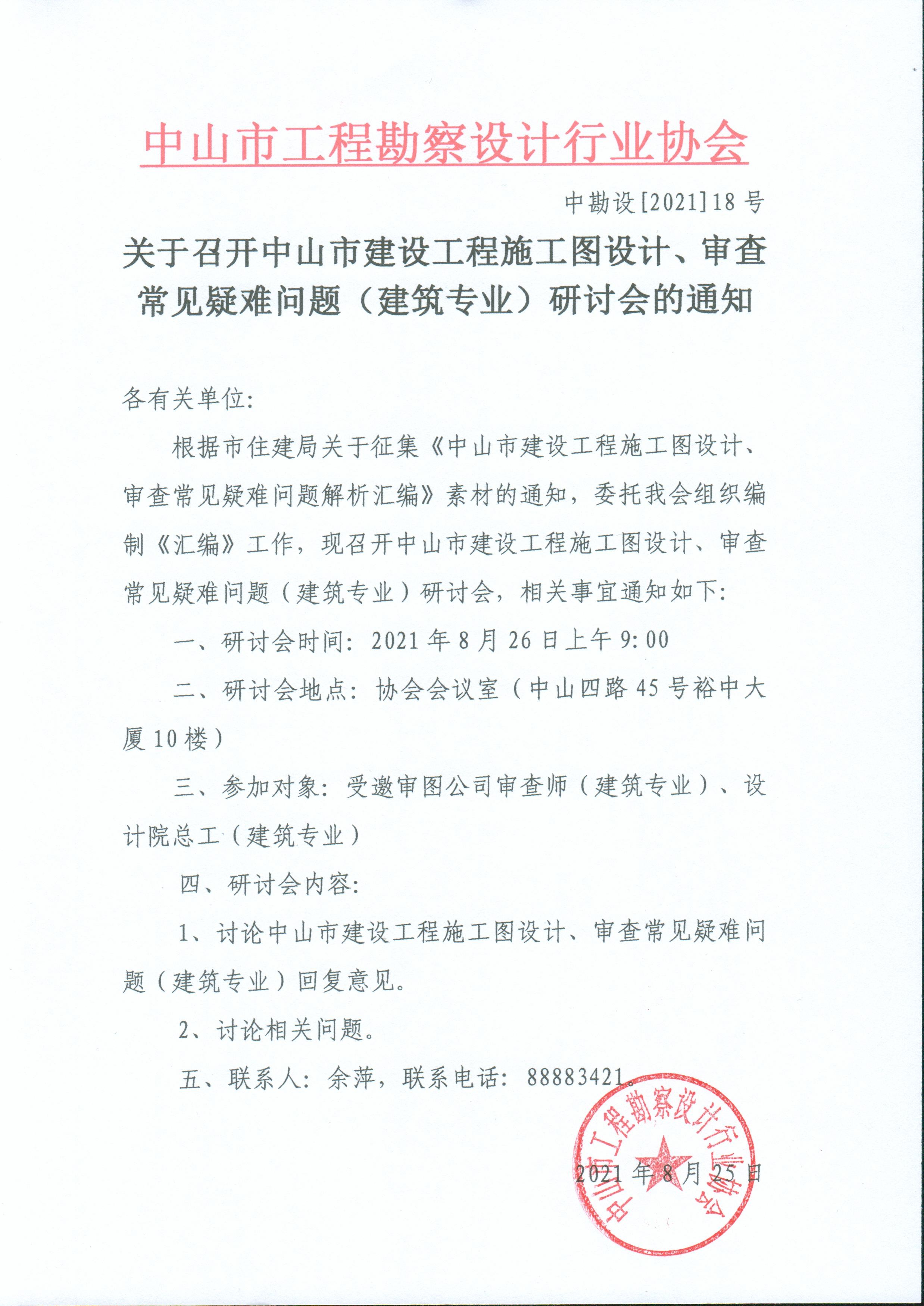 關于召開中山市建設工程施工圖設計、審查常見疑難問題(建筑專業(yè))研討會的通知