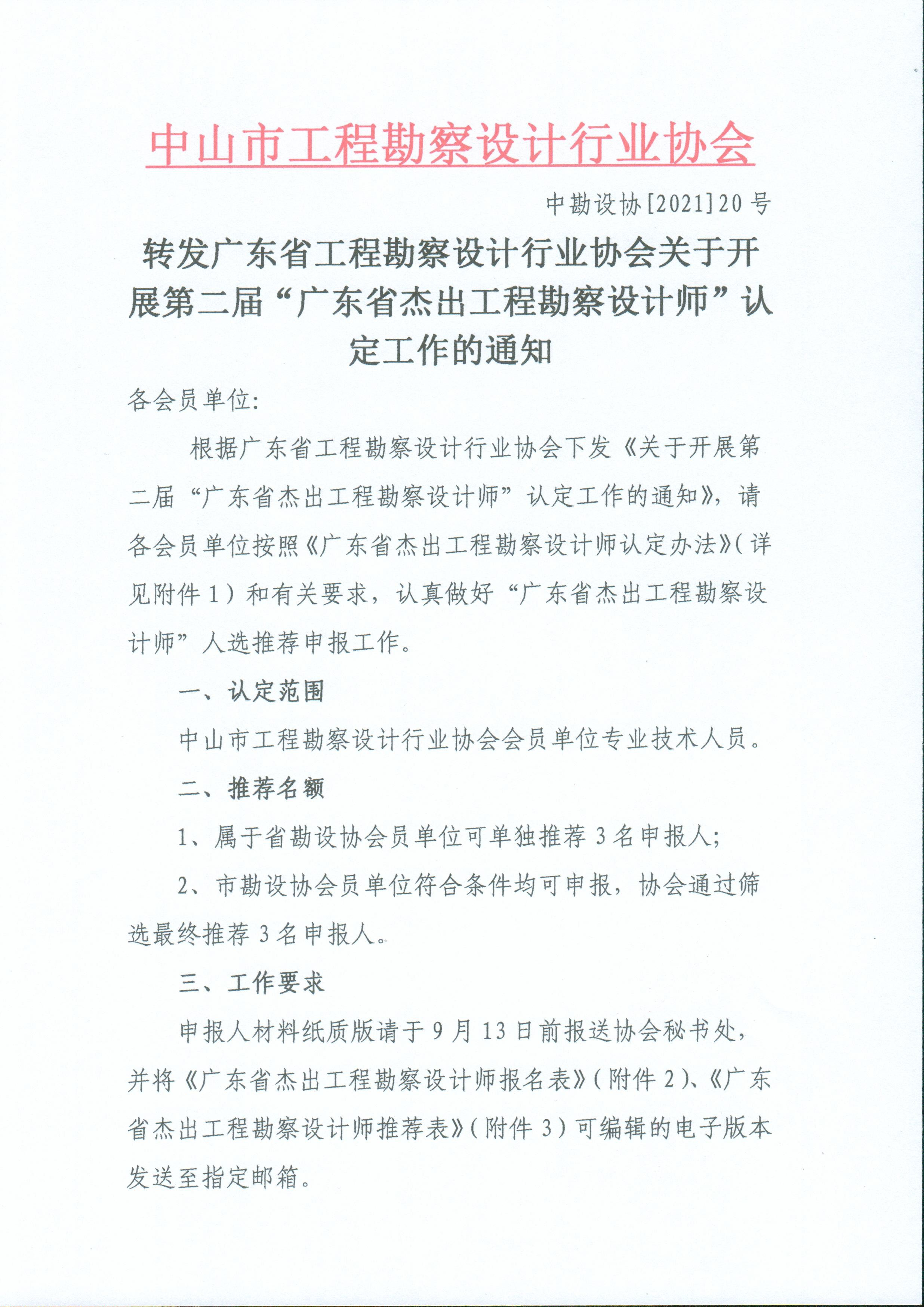 轉(zhuǎn)發(fā)廣東省工程勘察設(shè)計(jì)行業(yè)協(xié)會(huì)關(guān)于開(kāi)展第二屆”廣東省杰出工程勘察設(shè)計(jì)師“認(rèn)定工作的通知