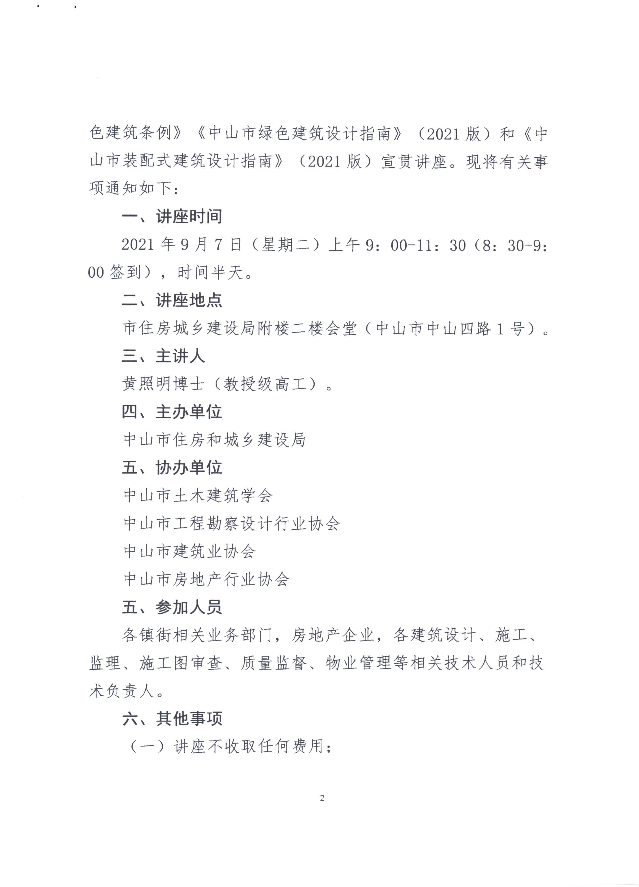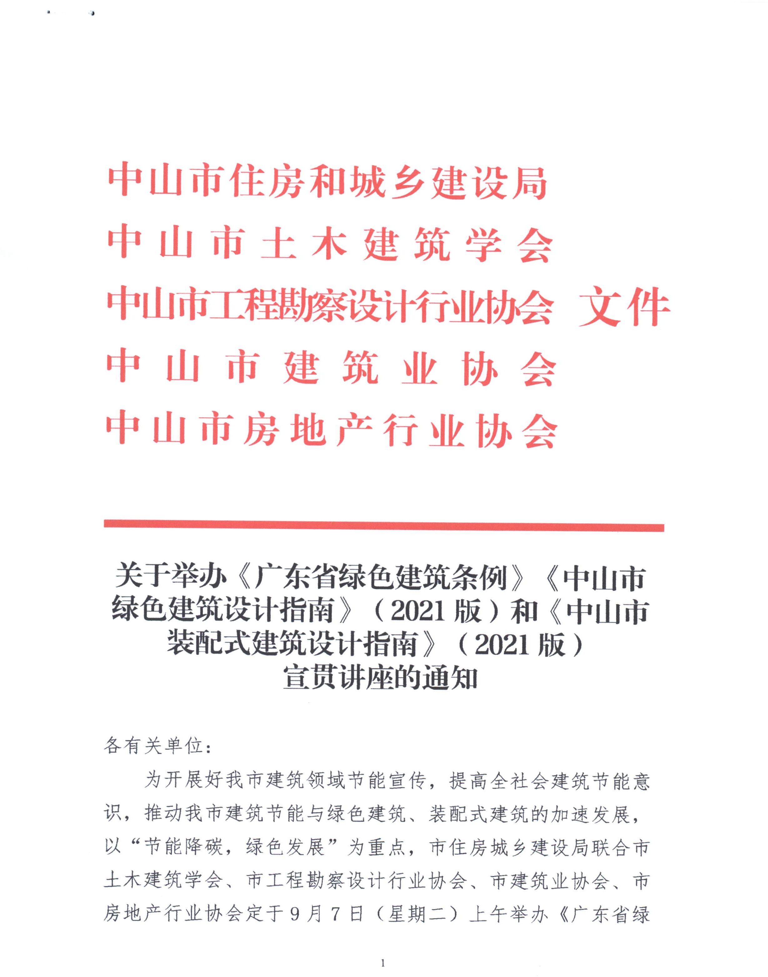 關(guān)于舉辦《廣東省綠色建筑條例》《中山市綠色建筑設(shè)計指南》《中山市裝配式建筑設(shè)計指南》(2021版)宣貫講座的通知