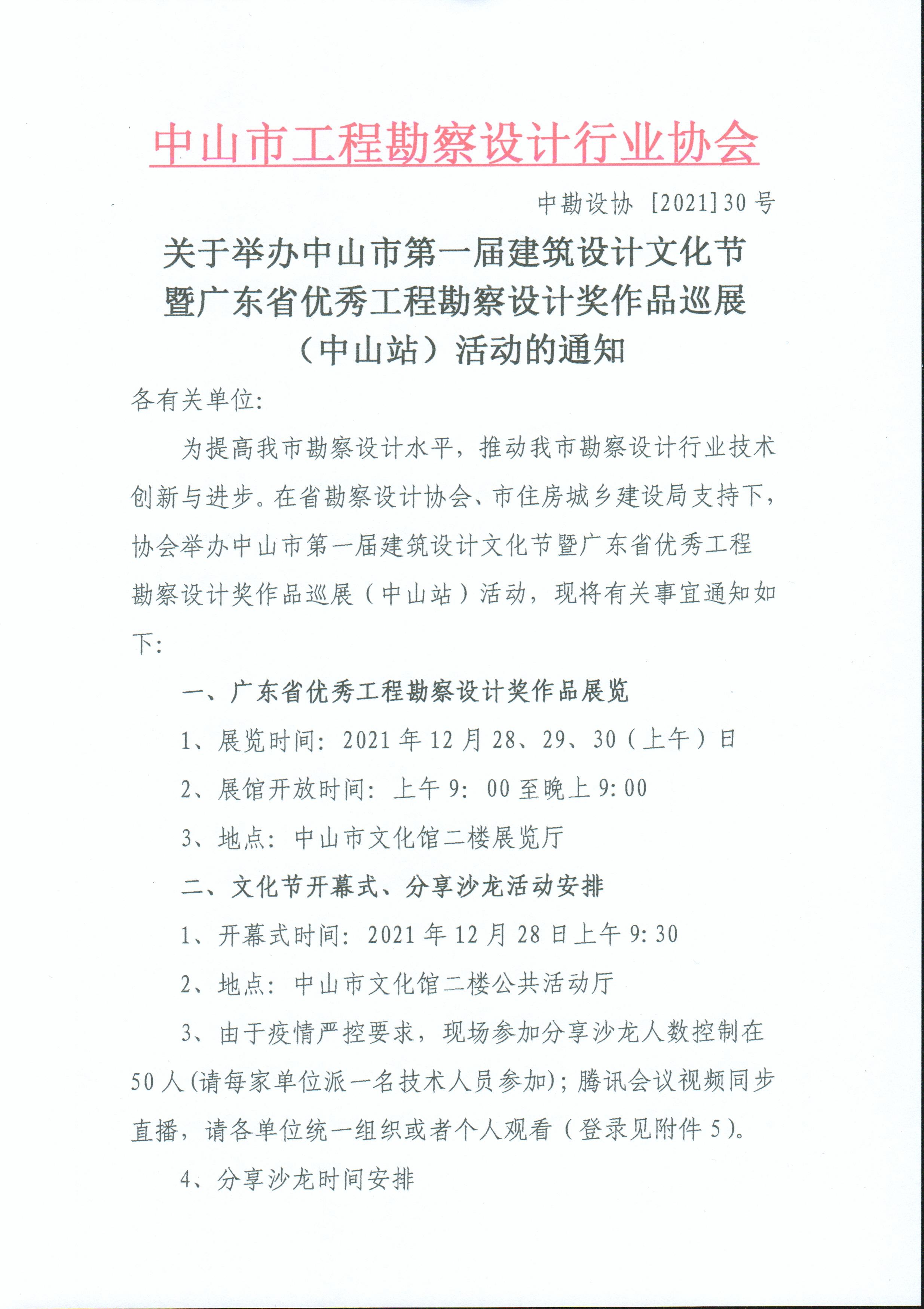 關(guān)于舉辦中山市第一屆建筑設(shè)計(jì)文化節(jié)暨廣東省優(yōu)秀工程勘察設(shè)計(jì)獎作品巡展(中山站)活動的通知