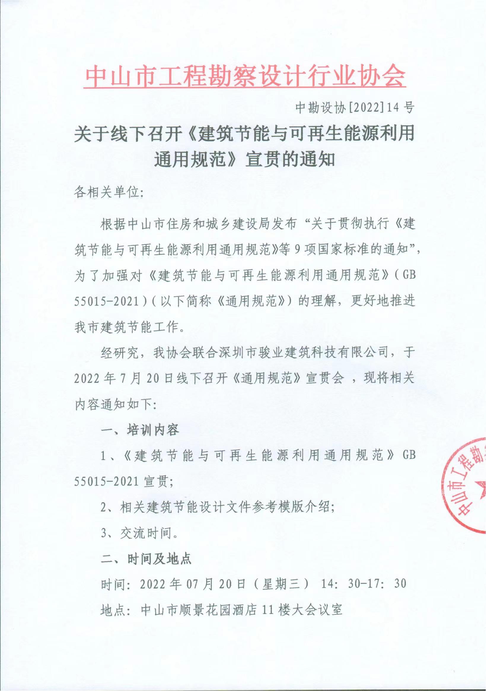 關(guān)于線下召開《建筑節(jié)能與可再生能源利用通用規(guī)范》宣貫的通知