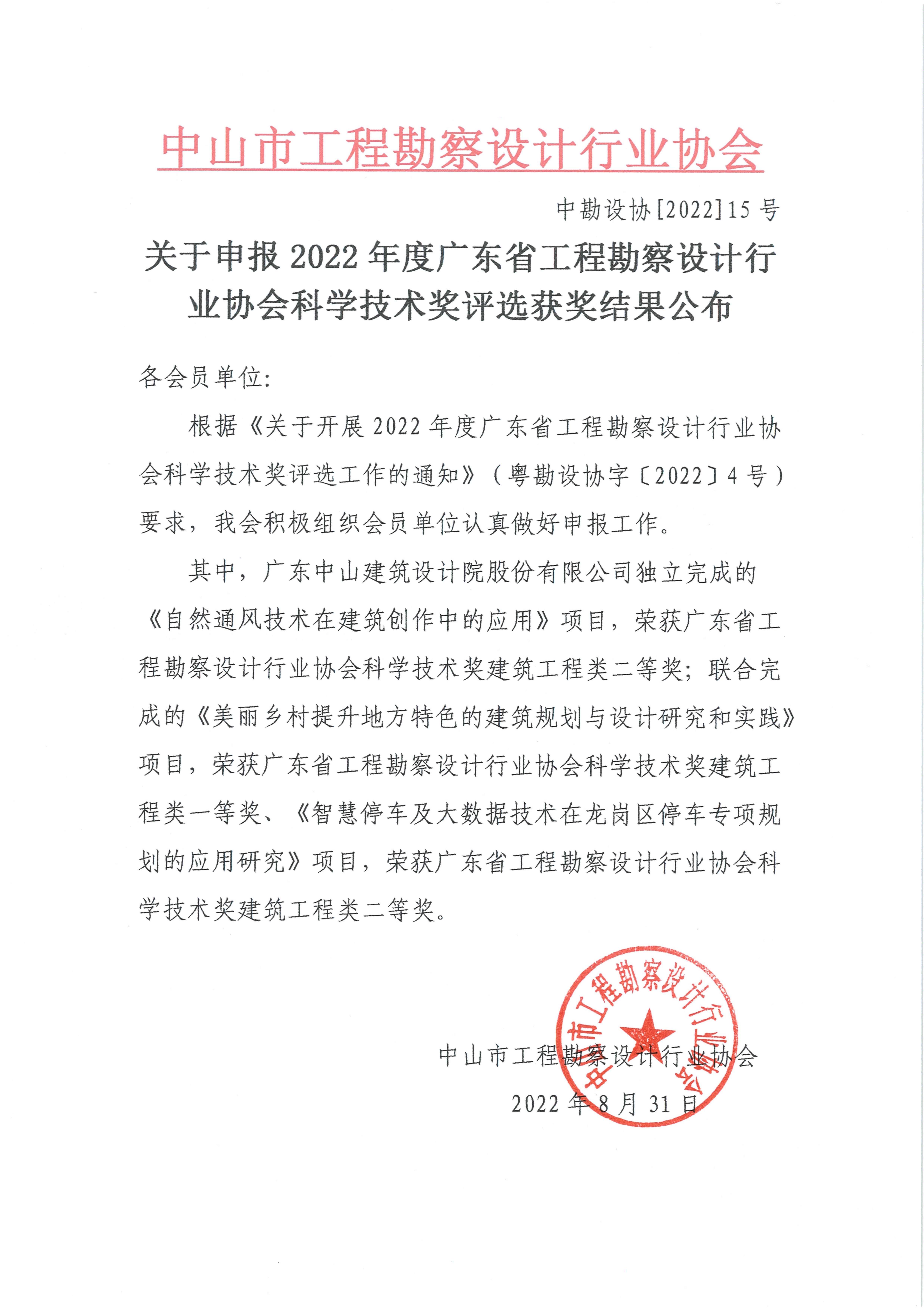 關(guān)于申報(bào)2022年度廣東省工程勘察設(shè)計(jì)行業(yè)協(xié)會(huì)科學(xué)技術(shù)獎(jiǎng)評(píng)選獲獎(jiǎng)結(jié)果公布