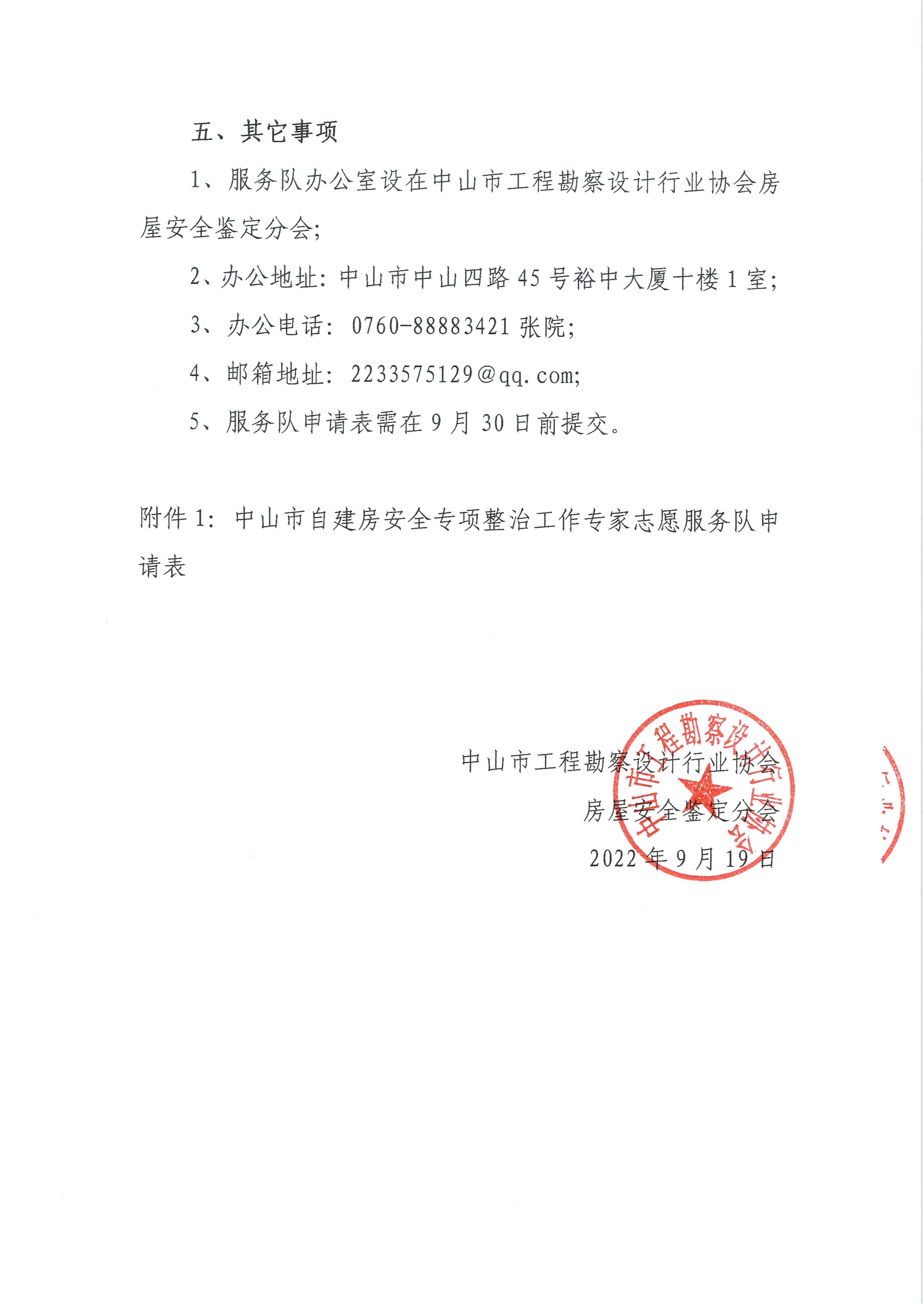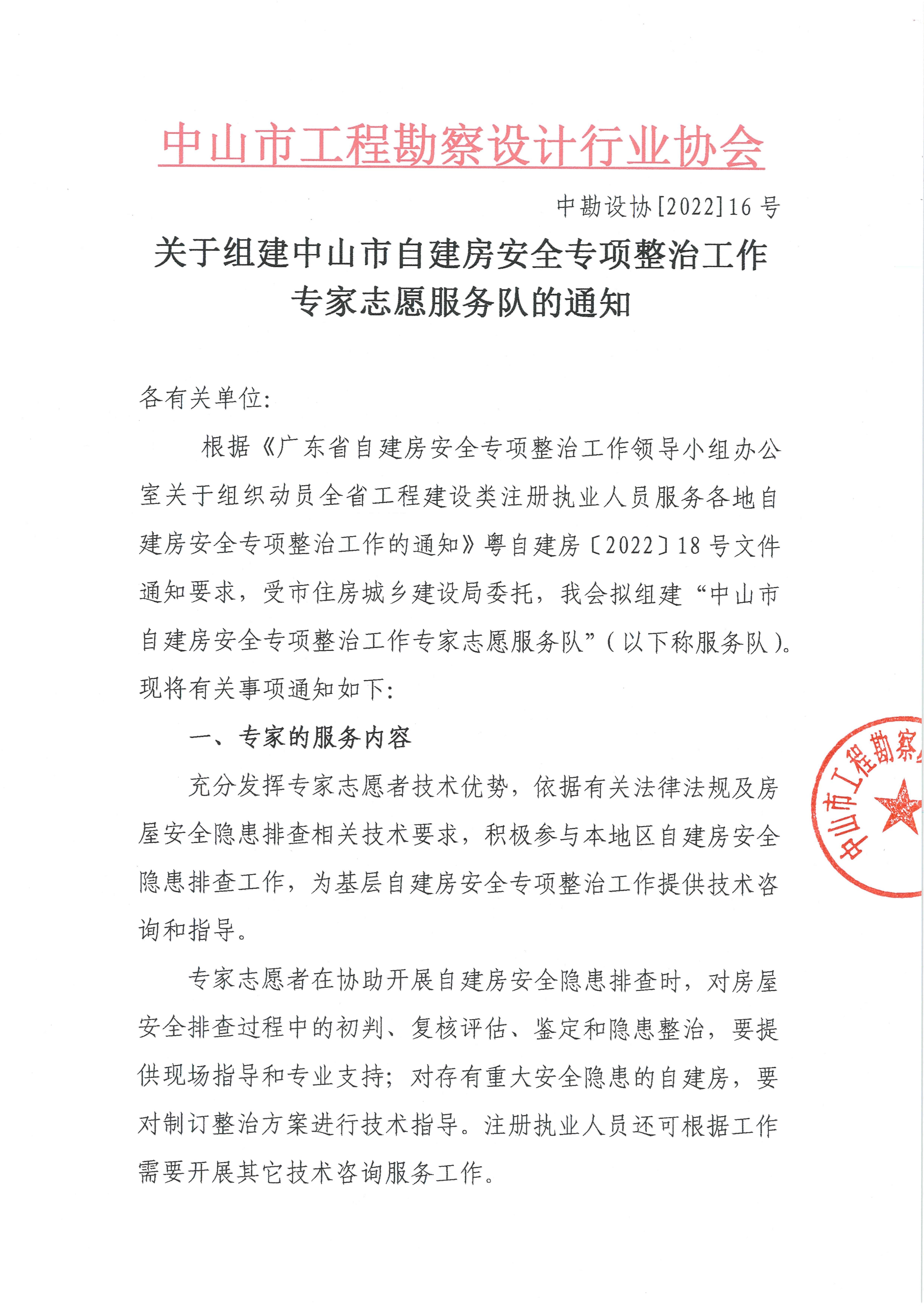 關(guān)于組建中山市自建房安全專項(xiàng)整治工作專家志愿服務(wù)隊(duì)的通知