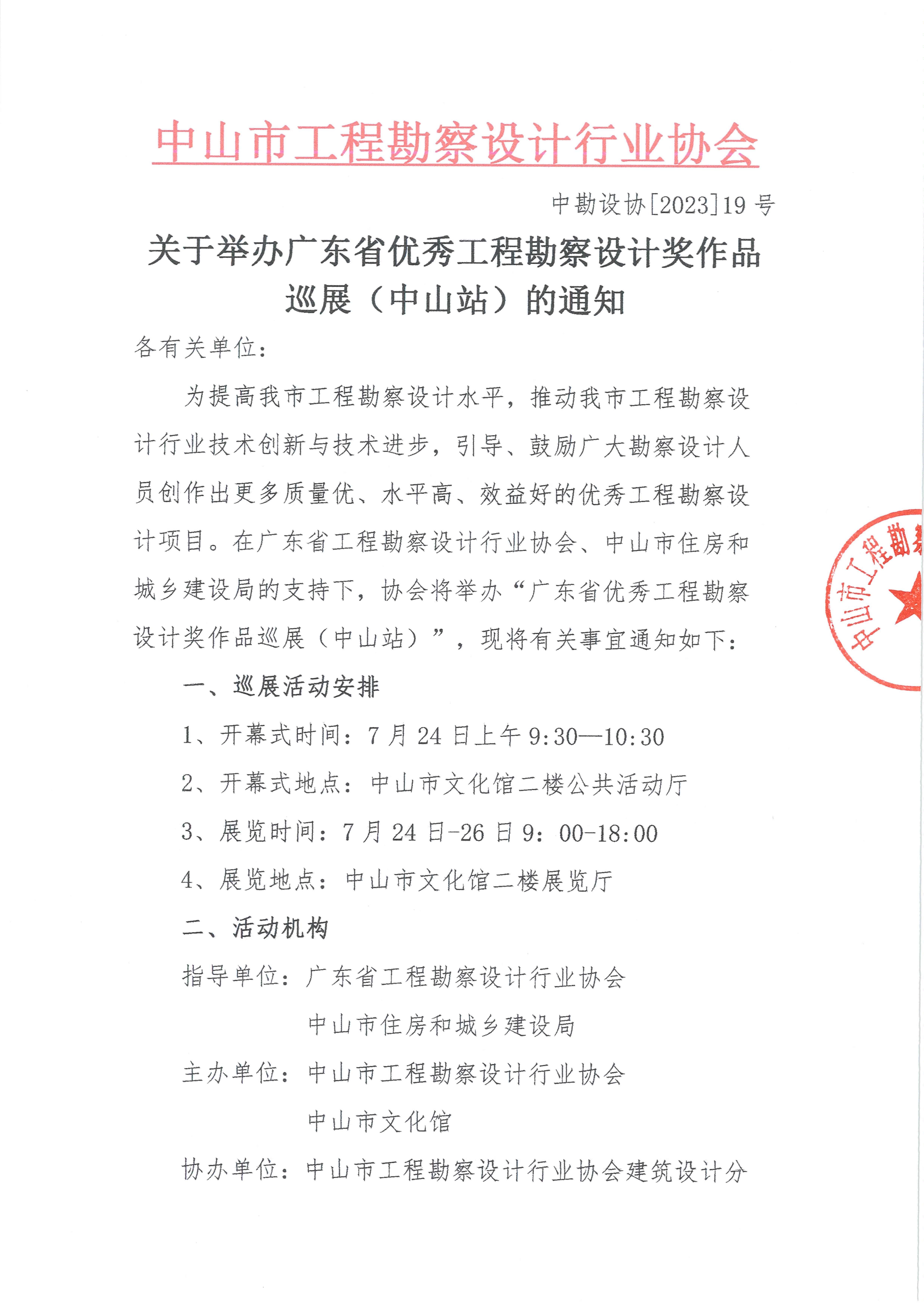 關(guān)于舉辦廣東省優(yōu)秀工程勘察設(shè)計(jì)獎(jiǎng)作品巡展(中山站)的通知