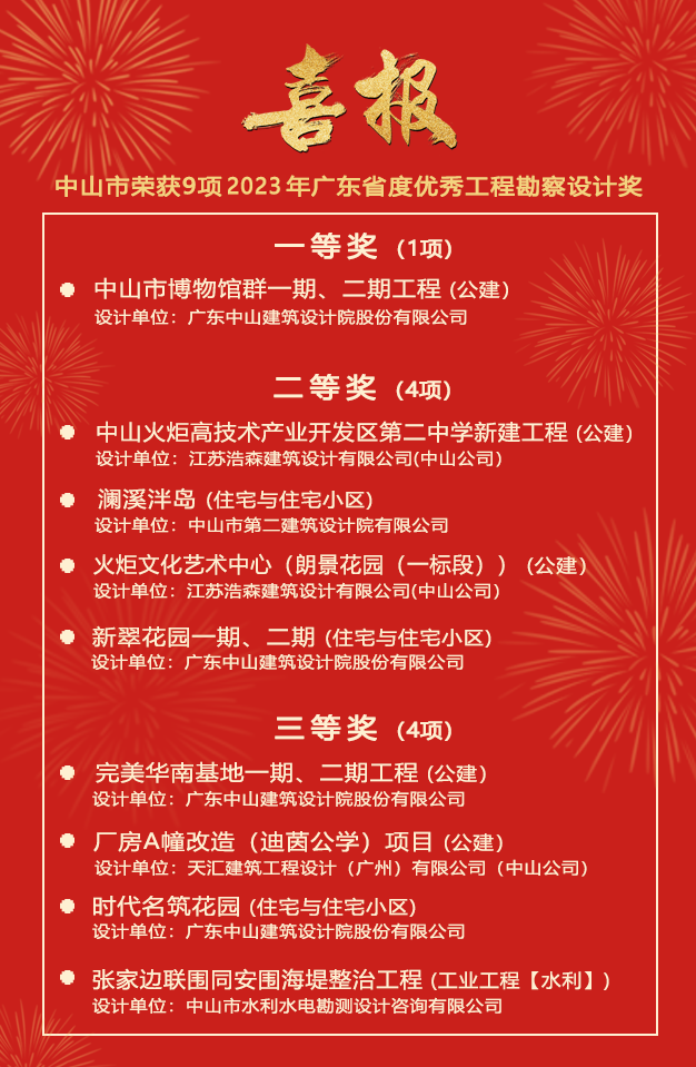 喜報(bào)!熱烈祝賀我市9個(gè)項(xiàng)目榮獲2023 年度廣東省優(yōu)秀工程勘察設(shè)計(jì)獎(jiǎng)