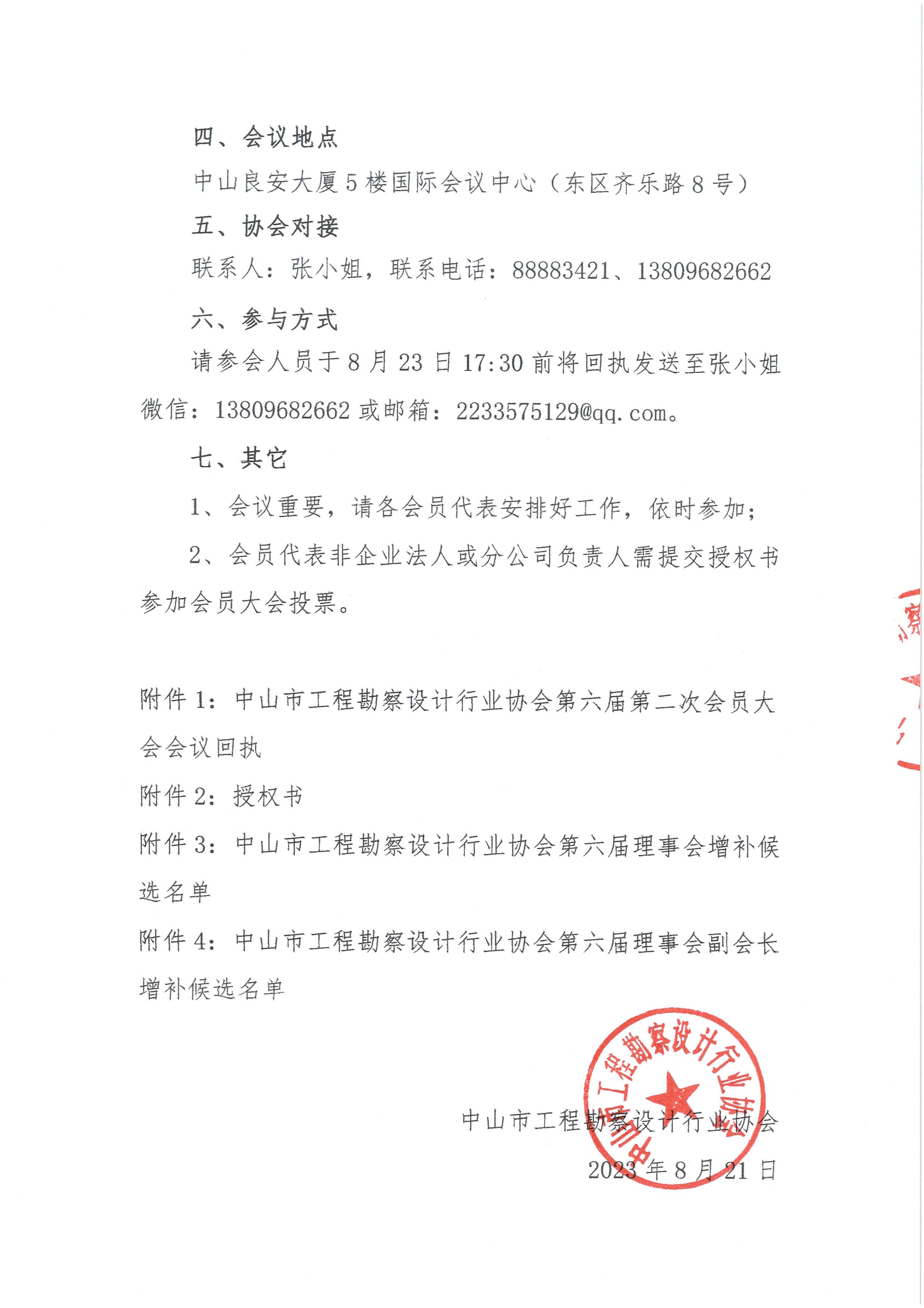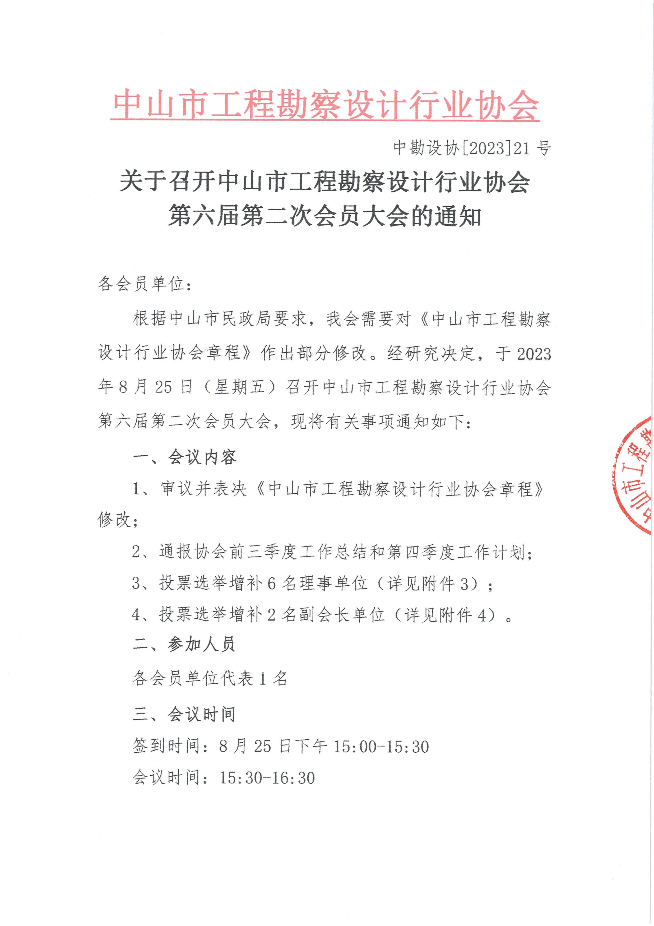 關于召開中山市工程勘察設計行業(yè)協(xié)會第六屆第二次會員大會的通知