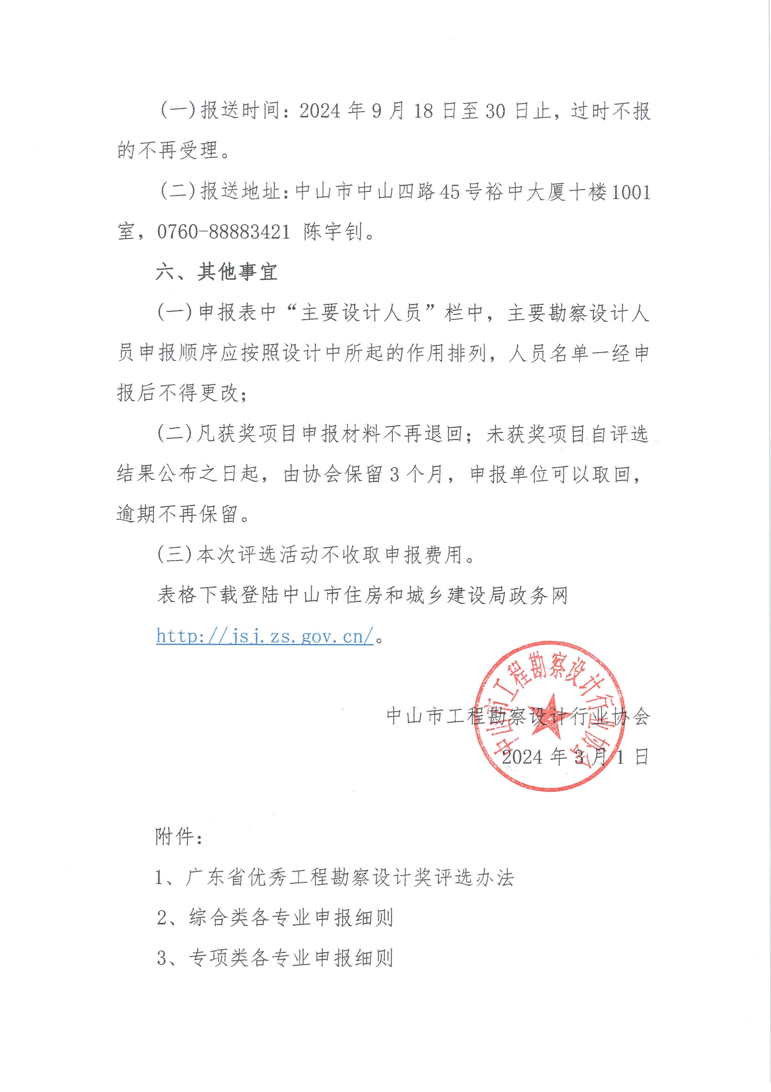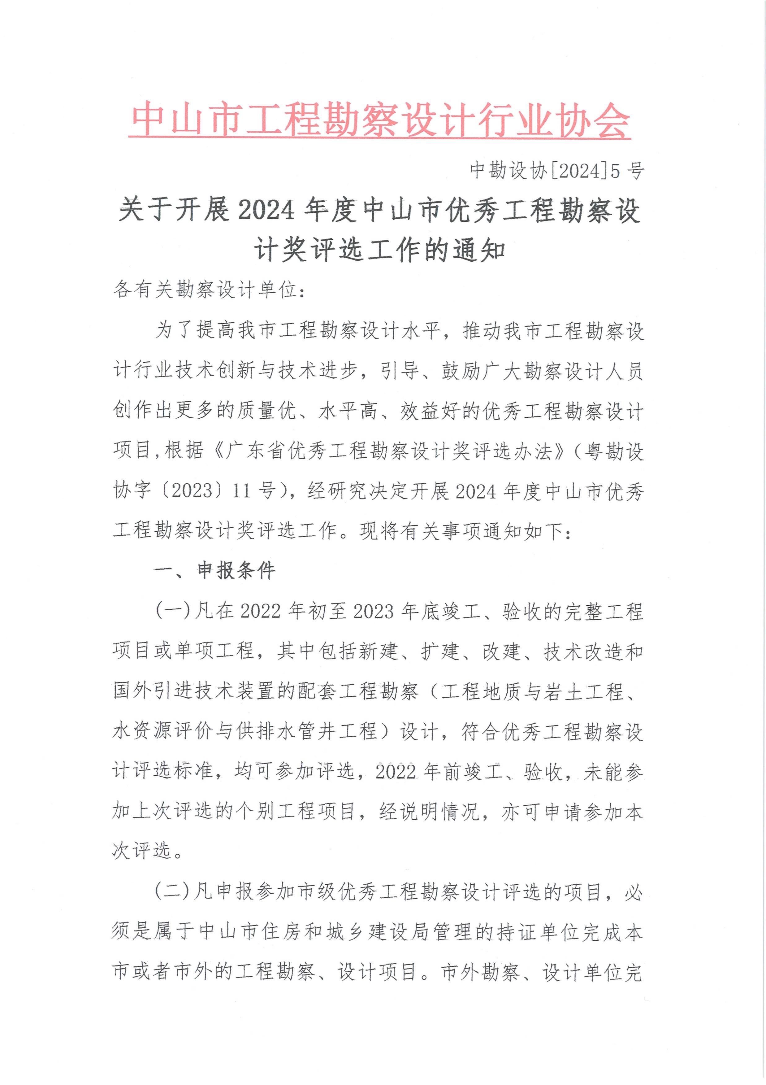 關(guān)于開展2024年度中山市優(yōu)秀工程勘察設(shè)計(jì)獎(jiǎng)評(píng)選工作的通知