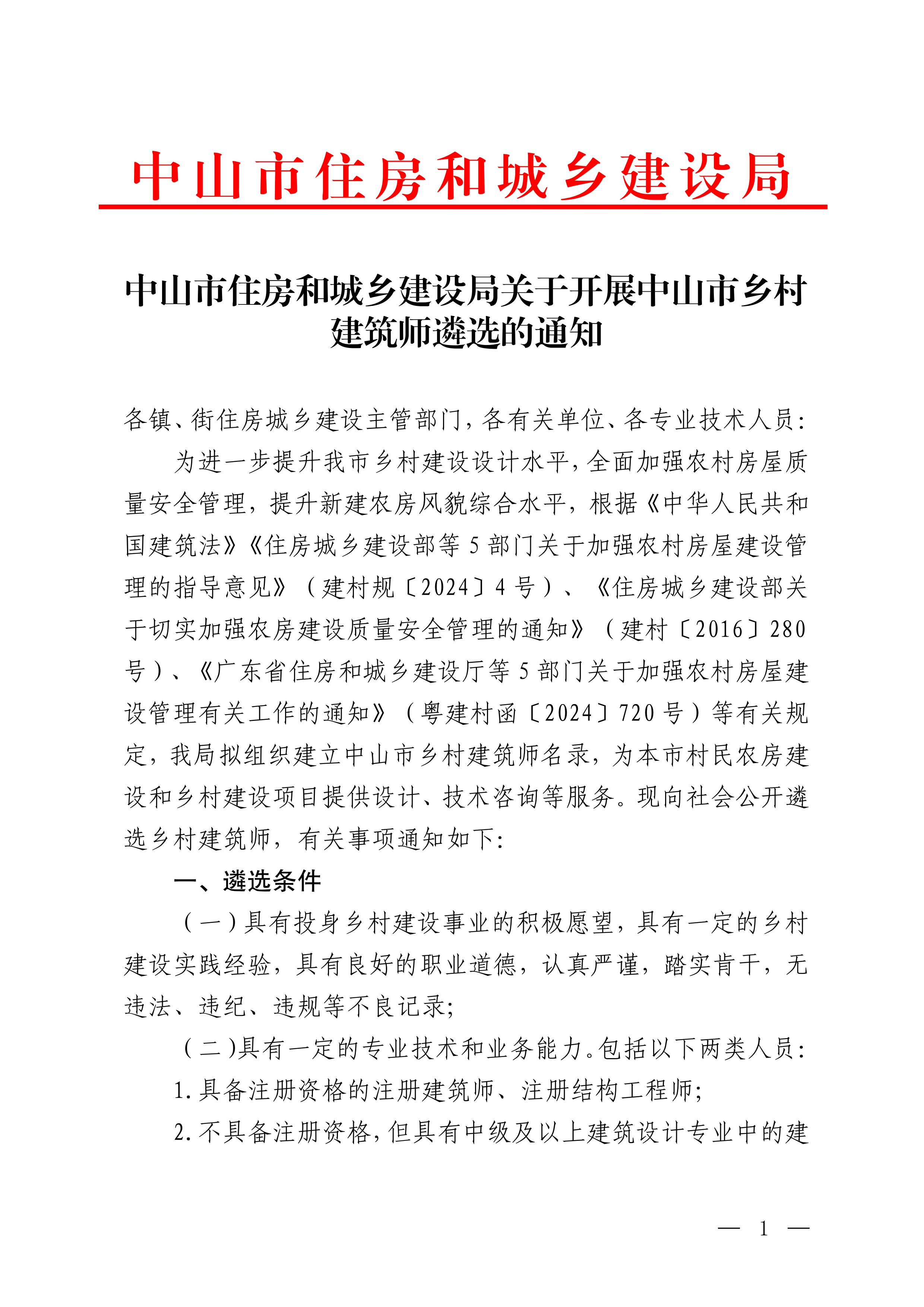 【轉(zhuǎn)發(fā)】中山市住房和城鄉(xiāng)建設(shè)局關(guān)于開展中山市鄉(xiāng)村建筑師遴選的通知