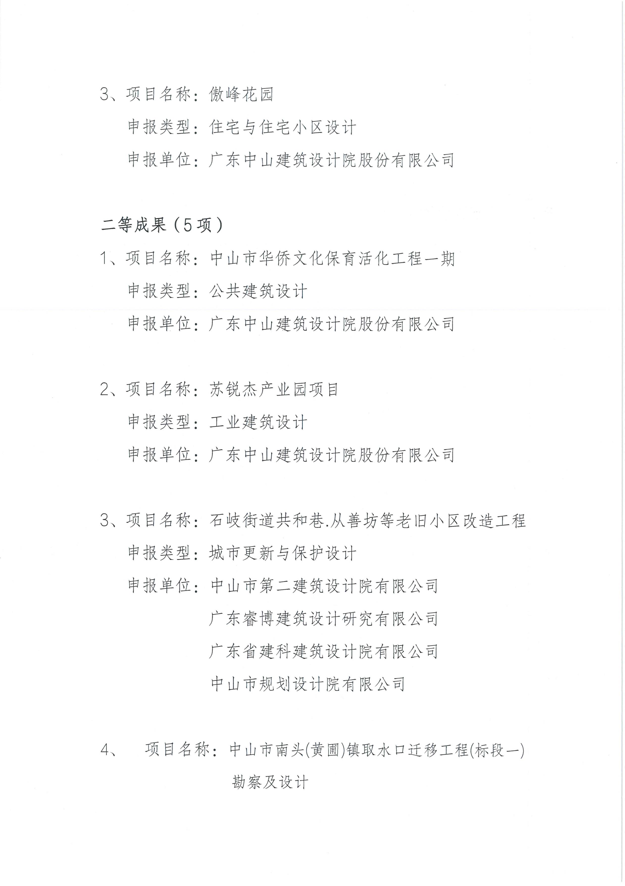 2024年中山市優(yōu)秀工程勘察設(shè)計(jì)獲獎(jiǎng)項(xiàng)目