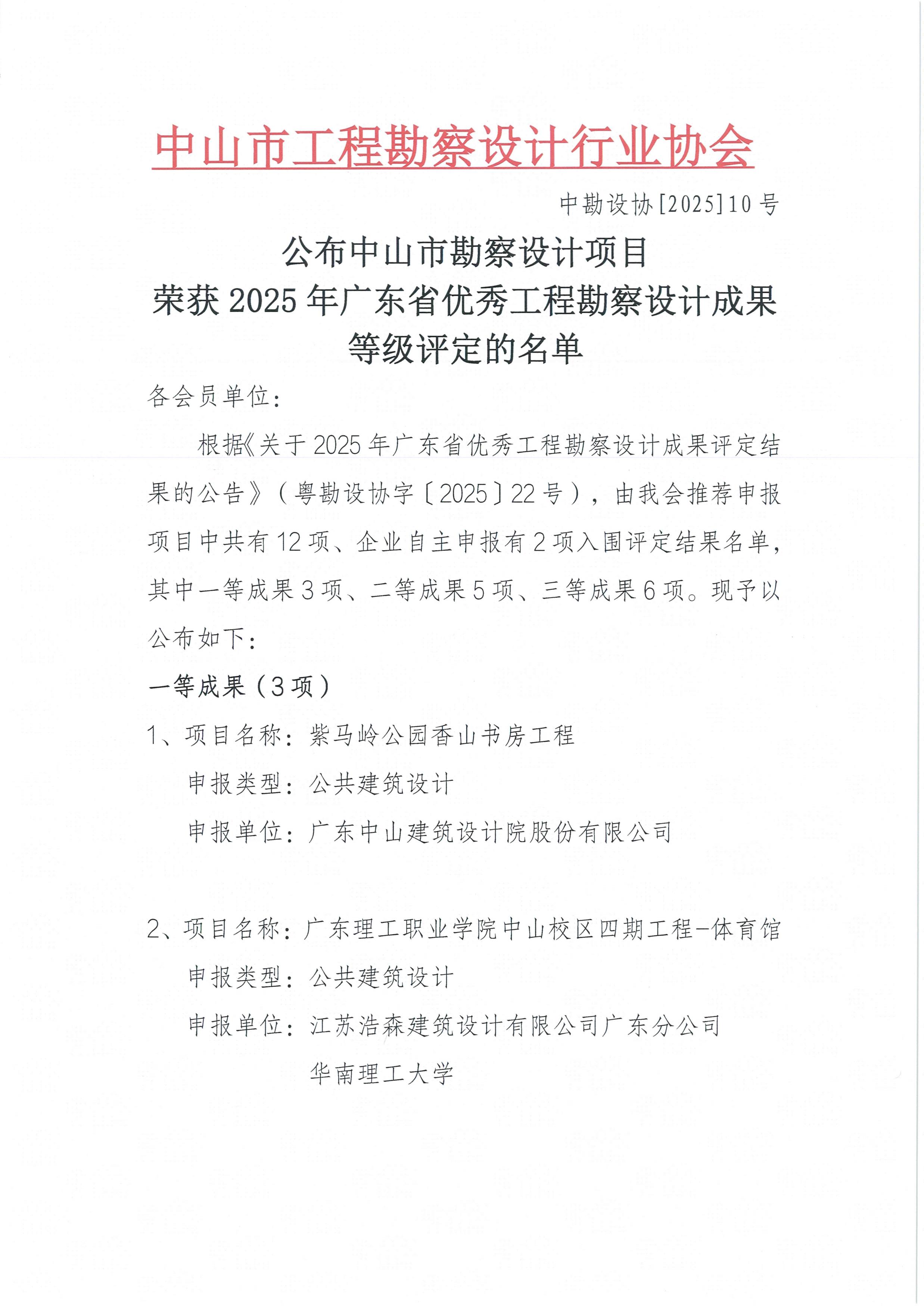 公布中山市勘察設(shè)計(jì)項(xiàng)目榮獲2025年廣東省優(yōu)秀工程勘察設(shè)計(jì)成果等級評定的名單